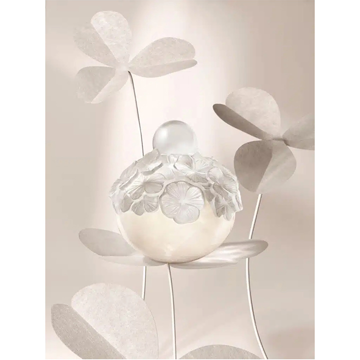 Création et réalisation d’un set design en papier » Trèfles » pour la campagne de communication du nouveau parfum des maison Lalique x Mikimoto